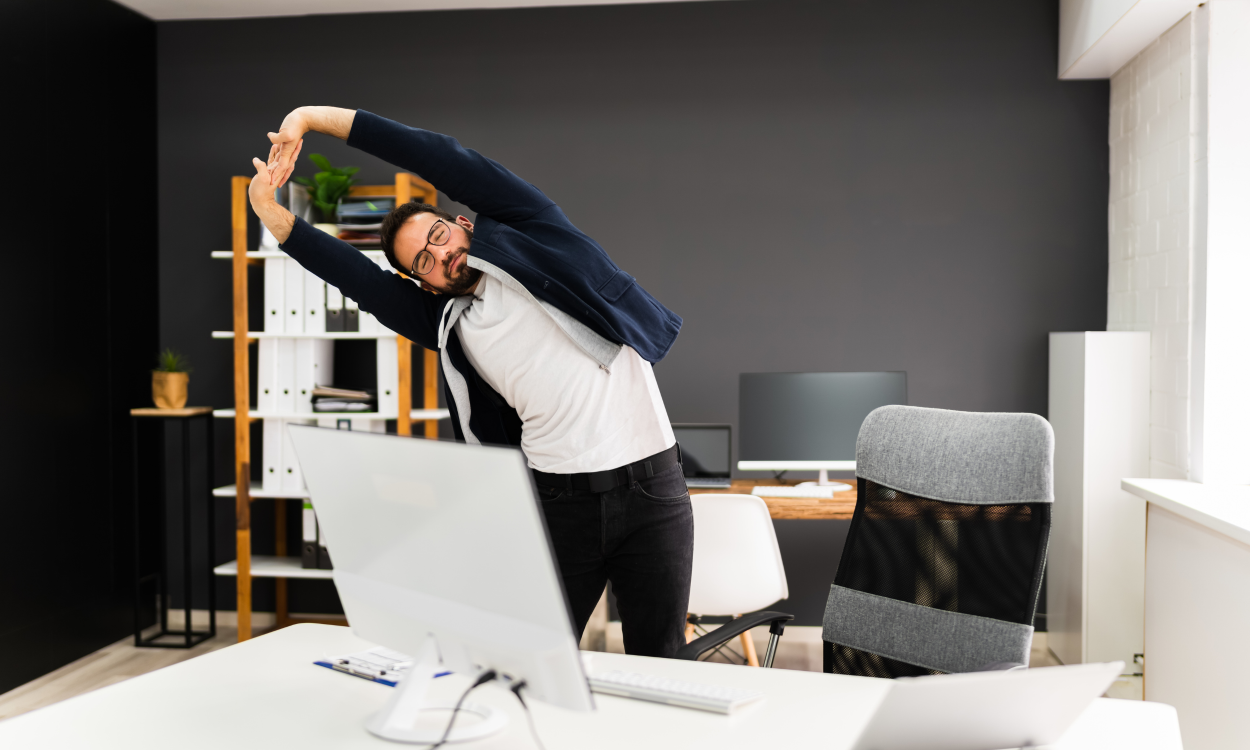 Even 5 minutes of stretching helps release tension and keeps your spine mobile.